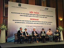 また、10月15日(月)にベトナムの証券規制当局であるSSCとASIFとの共催により2018年ASIFフォーラム「ブロックチェーンの証券市場への応用:海外市場の経験とベトナムへの示唆」がハノイで開催され、業界関係者を含む約90名が参加しました。山藤敦史氏(日本取引所グループ総合企画部、フィンテック推進室長IT企画部企画統括役)、Kitti Sutthiatthasil氏(タイ証券取引所Executive Vice President)が日本、タイにおけるブロックチェーン技術応用の取り組み状況について、またオーストラリアから参加したNathan Archer氏(Littlephil.org の Co-founder and CEO)が仮想通貨・ICO市場の現況について講演を行いました。パネルディスカッションでは更にブロックチェーン技術等に関連するベトナムの会社から講師が加わり、活発な議論が行われ、参加者から高い評価を得ました。一部セッションの動画をASIFウエブサイトに掲載する予定です。